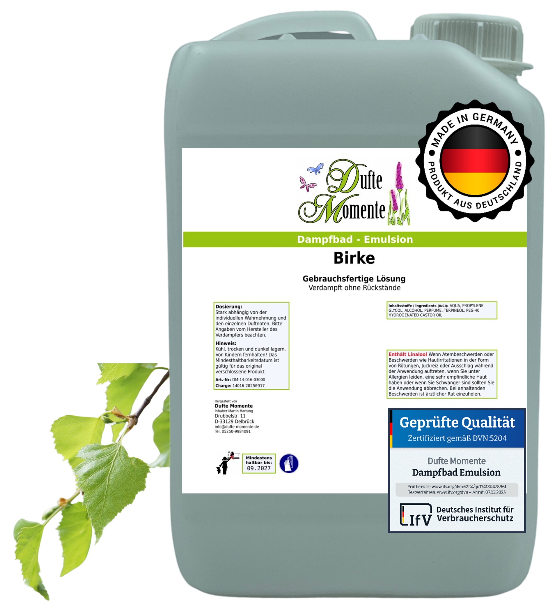 Dampfbad-Emulsion Birke | Gebrauchsfertig & DVN-Zertifiziert für Dein Home-Spa | 3L, 5L, 10L