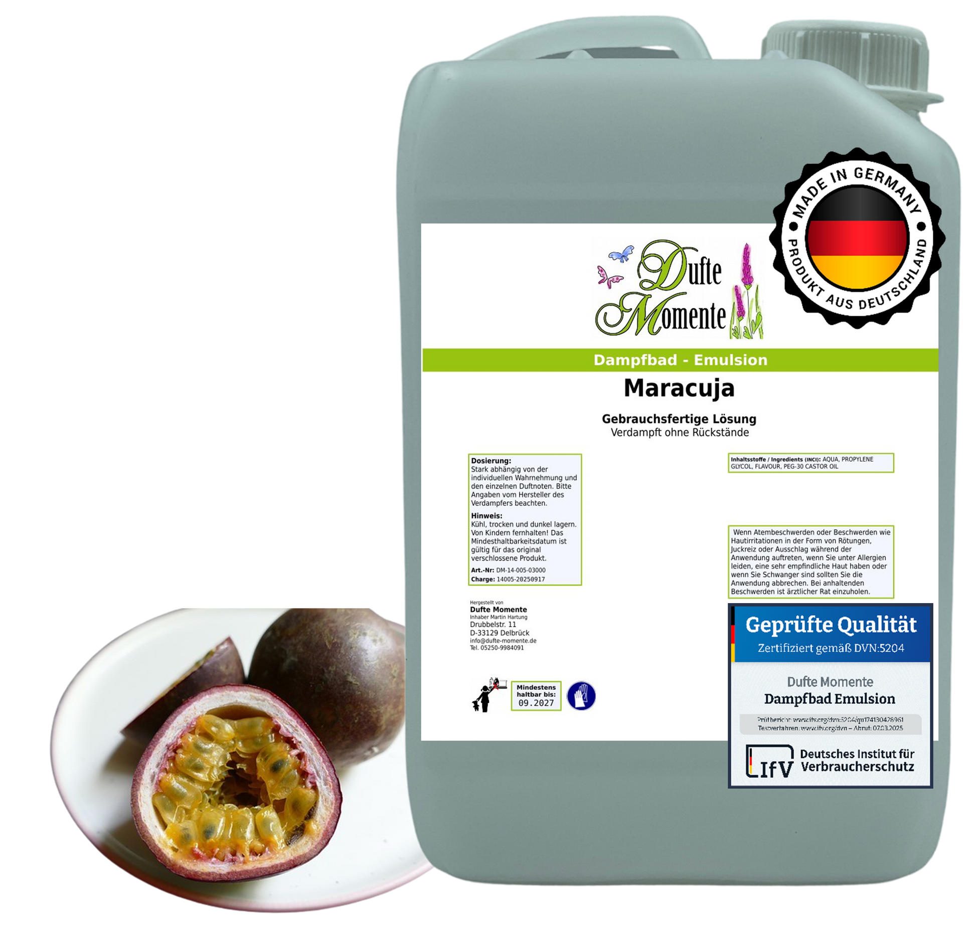 Dampfbad-Emulsion Maracuja | Gebrauchsfertig & DVN-Zertifiziert für Dein Home-Spa | 3L, 5L, 10L
