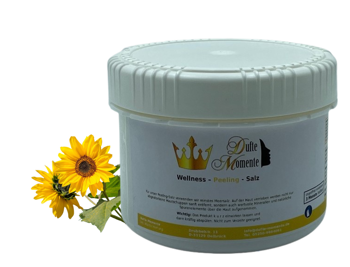 Salz Körperpeeling – aus reinstem Meersalz in BIO-Qualität und hochwertigem Massageöl als Duft- und Pflegekomponente von Dufte Momente – beliebt bei gewerblichen Anwendern wie Hotels, Thermen und anderen Wellness Einrichtungen